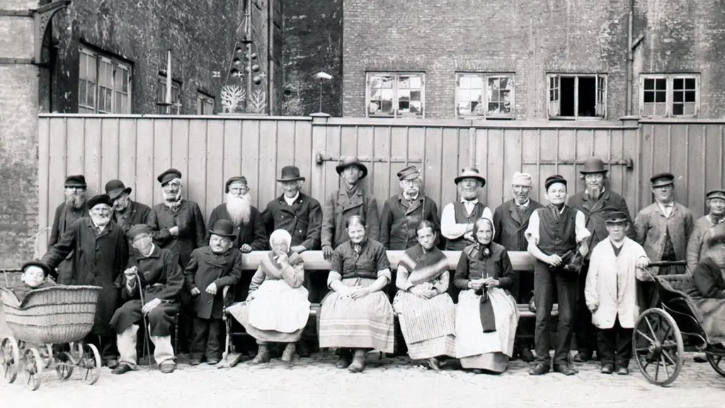 Fattiglemmer fra Almindelig Hospital opstillet i hospitalets gård 1890. Foto: Ukendt fotograf, Københavns Museum