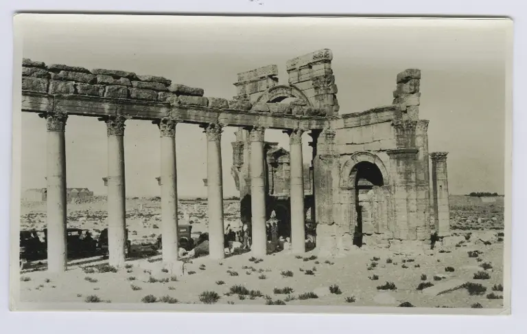 Den såkaldte Triumfbue i Palmyra opført i det 3. Årh evt. Fotografiet er fra 2. halvdel af 1920'erne. Triumfbuen er et af de monumenter, som ISIS sprang i luften. Den eksisterer derfor ikke mere. Foto: Rubina Raja og Palmyra Portræt Projektet, venligst udlånt af Philip Underdown