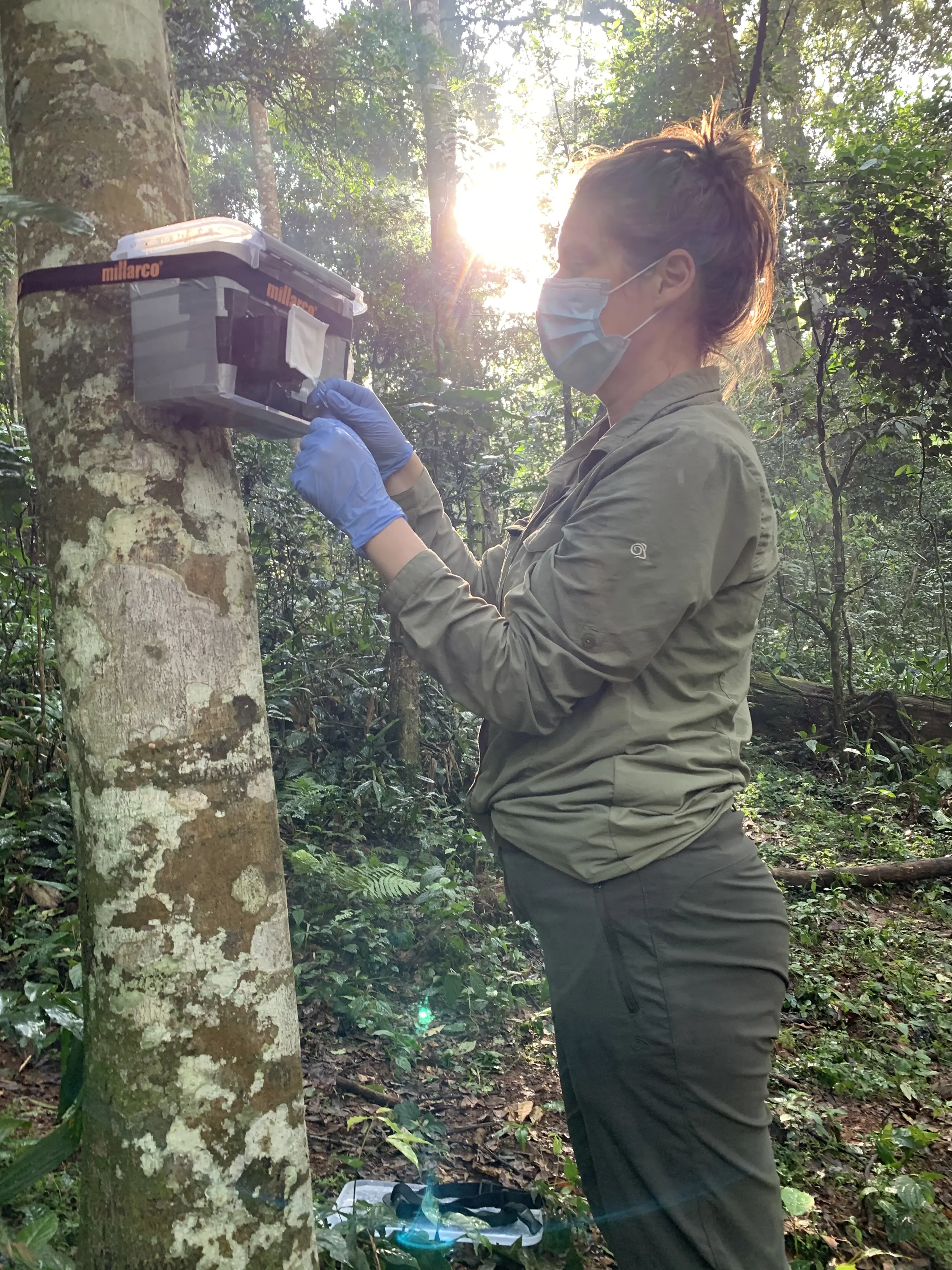 Månedens Forsker Kristine Bohmann er ved at sætte et filter på en “DNA-suger” i Uganda. Foto: Christina Lynggaard