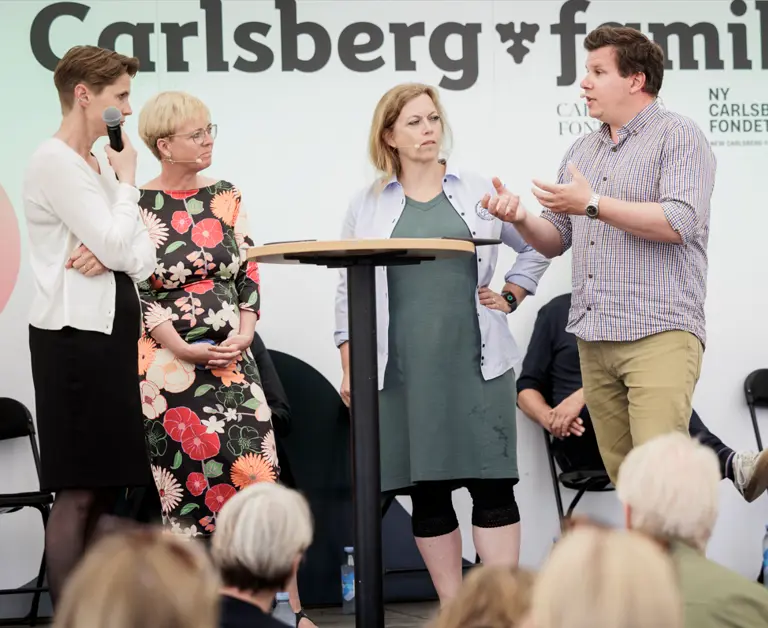 Hvert år er Carlsbergfamilien til stede på Folkemødet i eget telt med et omfattende program. Her inviterer vi til debatter, forskersamtaler, kunstperformances, koncerter og ikke mindst rum til fordybelse og eftertanke. De fleste samtaler om forskning bliver optaget og udgivet som podcast, så flere kan få glæde af dem.