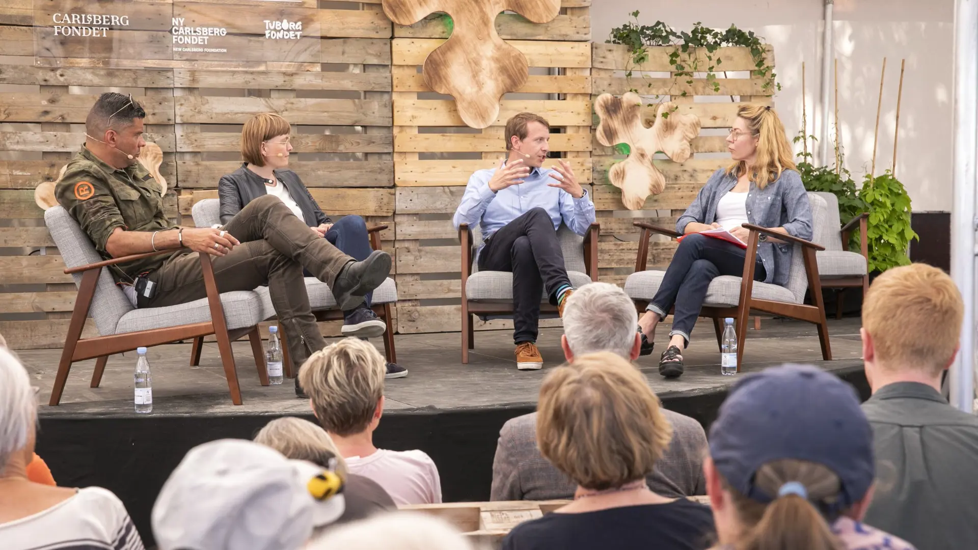 Hvert år er Carlsbergfamilien til stede på Folkemødet i eget telt med et omfattende program. Her inviterer vi til debatter, forskersamtaler, kunstperformances, koncerter og ikke mindst rum til fordybelse og eftertanke. De fleste samtaler om forskning bliver optaget og udgivet som podcast, så flere kan få glæde af dem.
